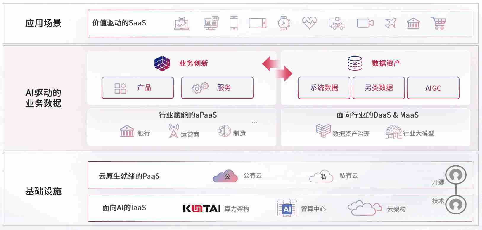 数字时代,,围绕企业数字化转型的关键要素,,,,欧博代理平台数码开创性的提出数云融合战略和技术体系框架,,着力在云原生、、、、数字原生、、、、AI原生和信创产业上架构产品和服务能力,,,,为处在不同数字化转型阶段的快消零售、、、、汽车、、、金融、、医疗、、、政企、、、、教育、、、、运营商等行业客户提供泛在的敏捷IT能力和融合的数据驱动能力,,,,构建跨界融合创新的数字业务场景和新业务模式,,助力企业级客户建立面向未来的核心能力和竞争优势,,,,全面推动社会的数字化、、、智能化转型升级。。